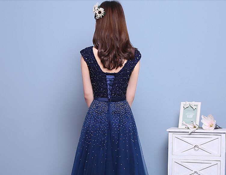 ネイビーノースリーブロングパーティードレス マキシ 結婚式