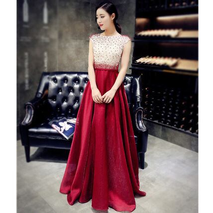 切り替えロングパーティードレス マキシ 赤白 結婚式 演奏会衣装