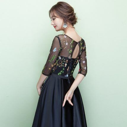 切り替え花柄ロングパーティードレス 結婚式 二次会 発表会 衣装