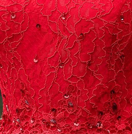レースふんわりロングパーティードレス赤 結婚式二次会お呼ばれ