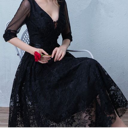 セクシーなパーティードレス 黒 透け感 ブラック 発表会 演奏会
