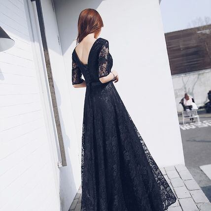 黒レースマキシパーティードレス ロング ブラック 結婚式 二次会