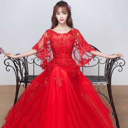 赤レース ロングパーティードレス マキシ 結婚式 二次会 演奏会