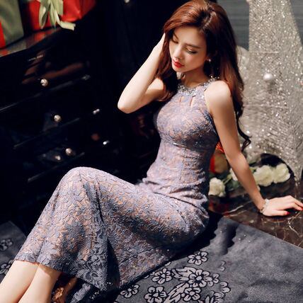 レースロングパーティードレス マキシ 結婚式 二次会 式典