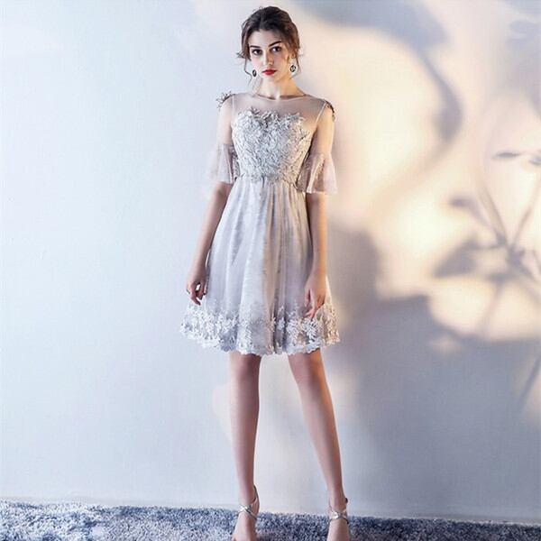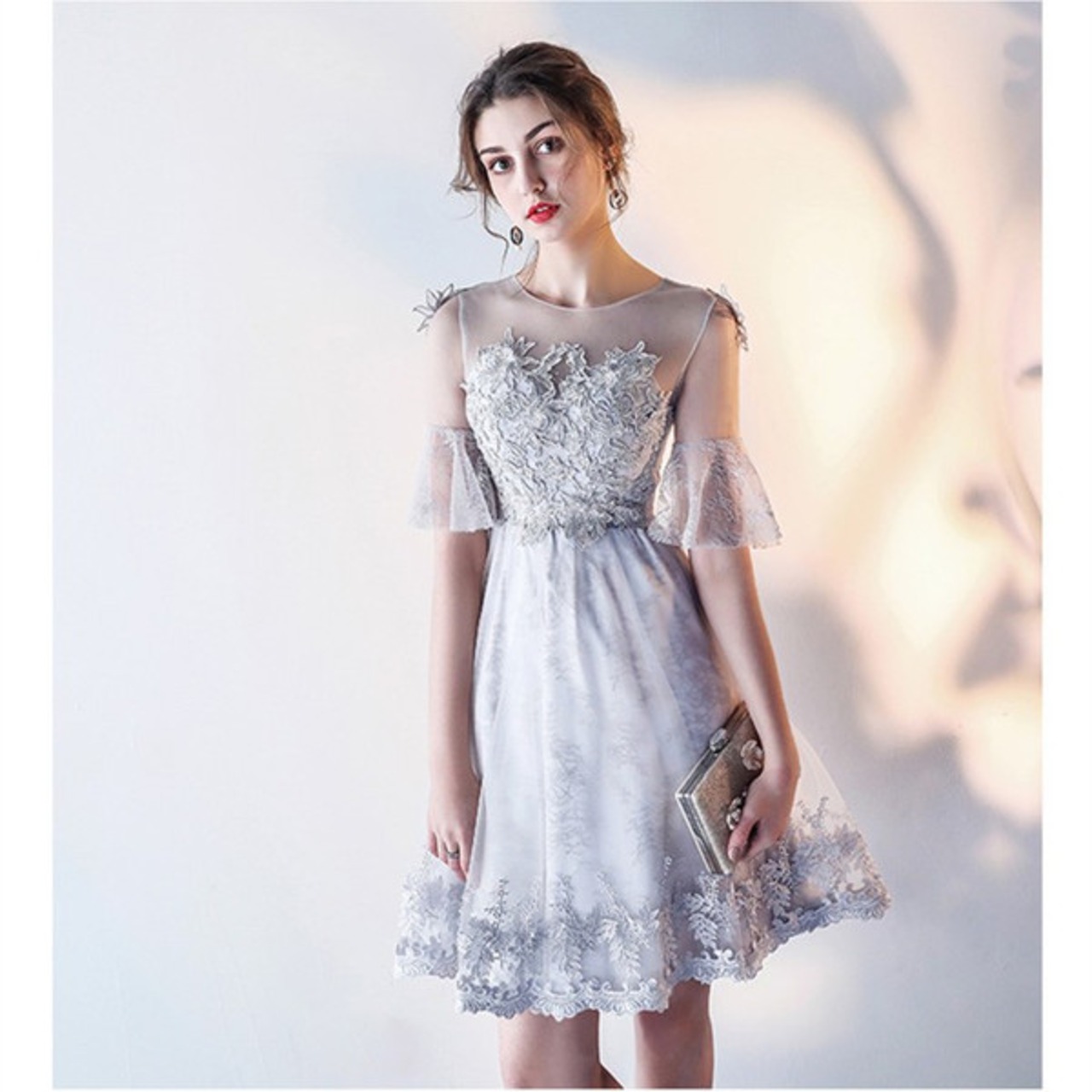 パーティードレス 結婚式 ドレス 二次会ドレス 袖あり 花嫁 パーティドレス フレア Aライン 二次会 ドレス ミニ 成人式 卒業式 披露宴 お呼ばれドレス ky7141