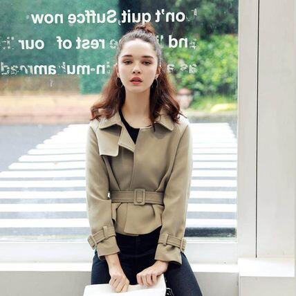 ショート丈 大人可愛いトレンチコート ベルトデザイン デート