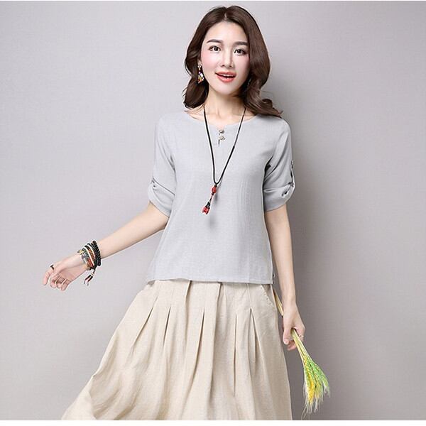 ブラウス カットソー レディース プルオーバー トップス シャツ 七分袖 綿麻 リネン混 無地 ナチュラル カジュアル 着痩せ おしゃれ メール便 セール