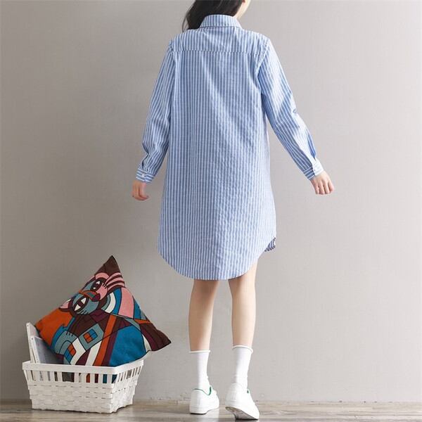 春新作 シャツ ブラウス レディース 長袖シャツ トップス 綿麻 ストライプ ミディアム丈 着痩せ ゆったり 森ガール ブラウス キレイめ レディースシャツ lwy2416